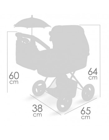Coche de muñeca plegable con sombrilla Sophie. Altura maxima del manillar 60cm