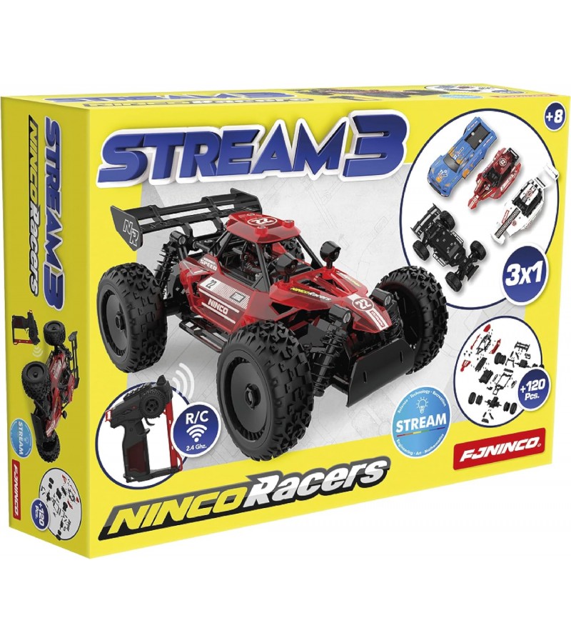 Stream 3 el coche de radio control que tendrás que contruir antes de poder llevarlo, con 3 carrocerás distintas.