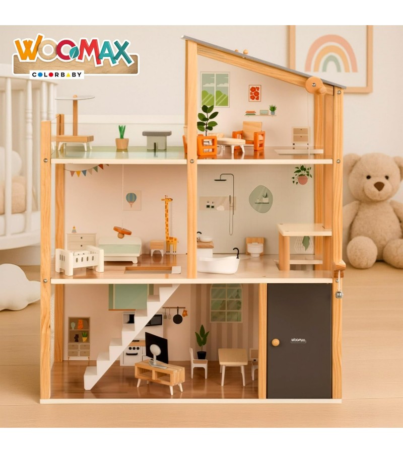 WOOMAX-CASA MUÑECAS MADERA 3 PISOS