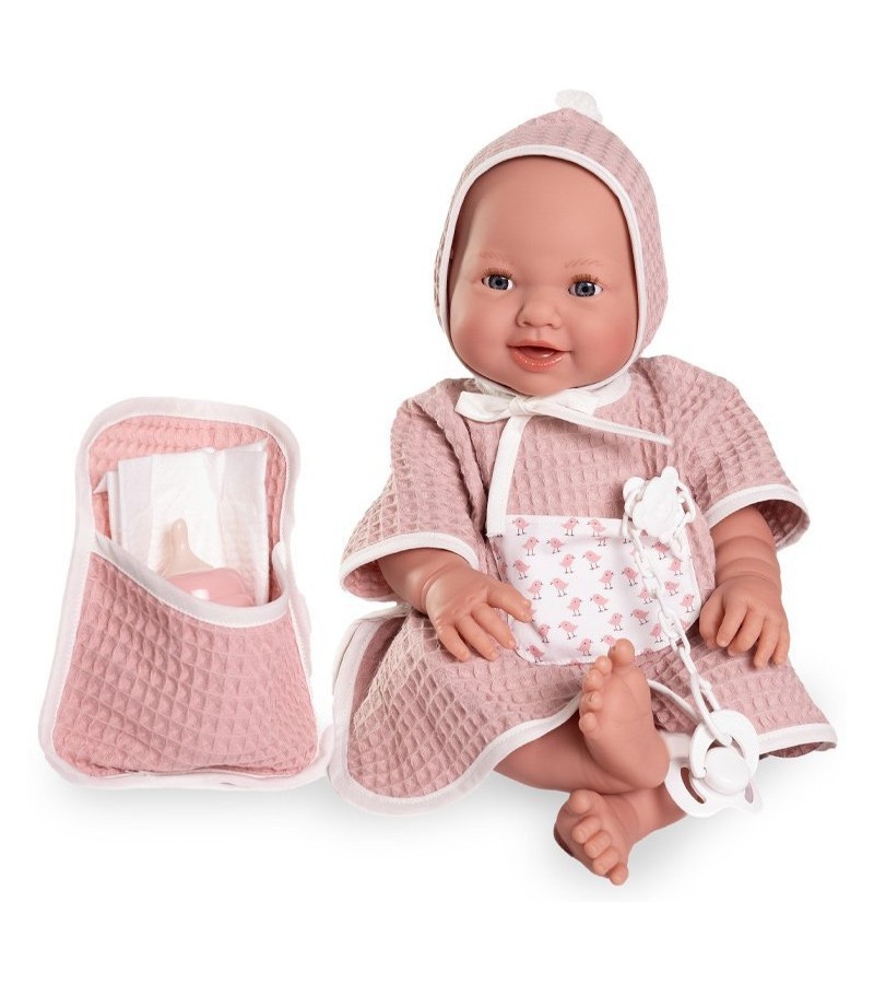 Muñeca recien nacida Mia hace pipi con capita de baño. Medida aproximada de la muñeca: 42cm