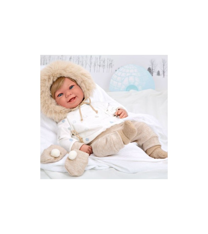 Muñeca Elegance en beige con manopla. Medida de la muñeca 45cm.